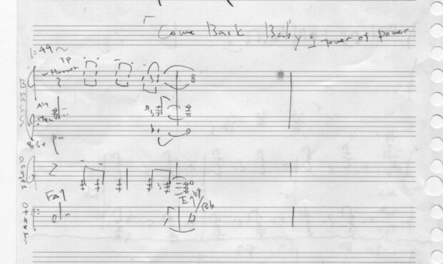 柔らかなハモンドは、ミュートの装着によって金属的な部分が強調されたトランペットをまろやかにし、やや内声の厚みに欠くサキソフォンのヴォイシングを補って響きを充実させています。このように工夫次第でブラスを人数以上に聴かせることができるのです。
