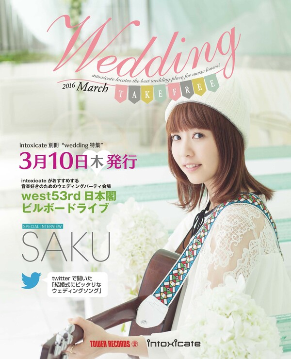 イントキがおすすめする音楽好きのためのウェディング会場のご紹介や、元タワレコ・スタッフのシンガーソングライター・Sakuさんのインタヴュー、twitterで聞いた「結婚式にピッタリなウェディングソング」、結婚式で使いたいワールドミュージックのすすめ、などなど、大きめのタブロイド版でタワーレコード各店で配布中です。