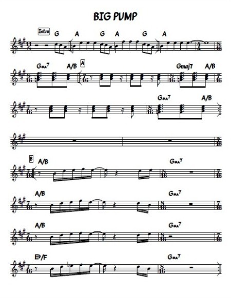 まずはこの動画を。2013年のライブ映像ですが、2008年リリースの『Now Vs. Now』に収録されている“Big Pump”という曲です。大きい流れとしてはずっと11/8で進んでいますが、一聴しただけでは何拍子か、どこがアウフタクト※かわからないような曲です。以下の譜面をご確認ください。