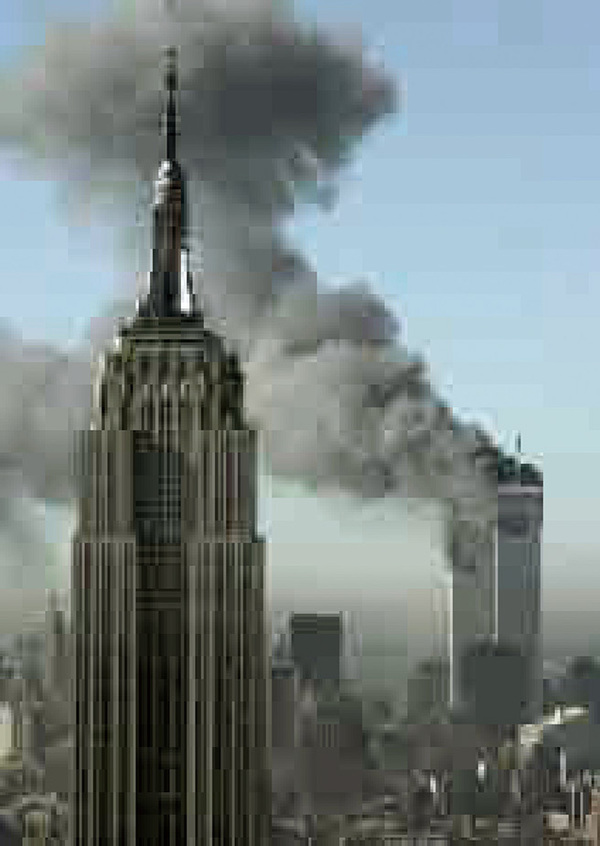 たとえば、「jpeg」シリーズ。画像データの圧縮方式に着目した同作では、アメリカ同時多発テロのような歴史的事件のイメージが、ブロックノイズまじりに提示されることによって、私たちが日々触れる画像の脆弱な構造が、端的に示されている。一方、ネット上にあげられた一般人によるポルノ画像を加工した「ヌード」シリーズは、見ず知らずの他者の営みに簡単に触れられる経験の、窃視的な不気味さを感じさせるものだろう。