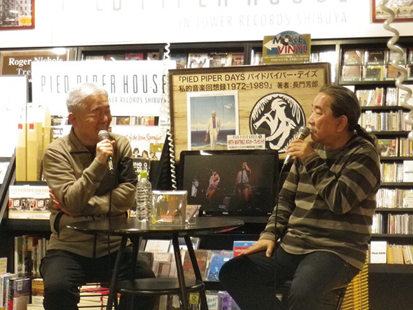 70年代に青山にオープンして、数多くのミュージシャンや音楽ファンから愛された伝説のレコード店、パイド・パイパー・ハウスの店主にして、細野晴臣や大貫妙子など様々なミュージシャンのマネージャーも担当してきた長門芳郎。そして、はちみつぱいやムーンライダーズといったバンドを通じて日本のロックに影響を与えてきた鈴木慶一。日本のロック・シーンの激動期の真っ只中を生きた二人によるトークショウが1月19日に行われた。場所はタワーレコード渋谷店内に復活したパイド・パイパー・ハウス。店の前には大勢の音楽ファンが駆けつけて、二人のおしゃべりに耳を傾けた。