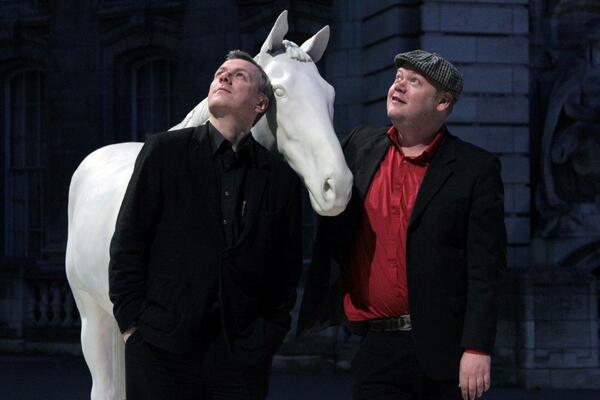 「僕がマイク・ネスミス(モンキーズのメンバー)と一緒に撮った写真なんだけど、僕は嬉しそうなのにマイクは疲れ果てた顔をしている。この写真をハリーに送ったら、ハリーがこんなふうに絵に描いてくれたんだ」