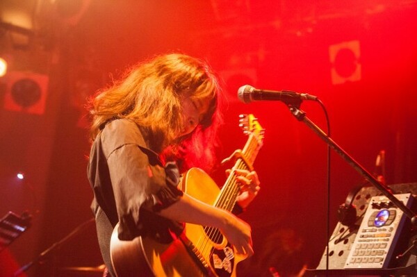ここからラスト・スパート。パーカッシヴなアコギのカッティングと、鳥のさえずりのようなファルセット・ヴォイスが清々しい“Marian”を経て、映画「ヴァージン・スーサイズ」の主人公がモチーフだという“L.u.x.”へ。静謐なアコギのアルペジオから、徐々に楽器がレイヤーされ、マイ・ブラッディ・ヴァレンタインの“Sometimes”を思わせる、橋本のトレモロアーム奏法がビリビリと空気を引き裂いていく。分厚い音の壁が、洪水のようにフロアを埋め尽くし、MINAKEKKEのオルガン弾き語りによる“Haunted Song”で本編は終了。アンコールはタイトル曲“Tingles”を披露した。