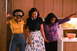 エンストした自動車の中・外・下に座り・立ち・寝転ぶ三人のヒロインの、表情とポーズとファッションがかっこいい。その場違いなほどの余裕が示す通り、彼女らはエンストをあっけなく直し、通りかかった白人警官を手玉にとって先導させ、それを追って無茶なスピードで車をぶっ飛ばす。場面のことごとくが場違いな要素でありつつ、その場違いが生み出す痛快な笑いを満載して、映画は走り始める。