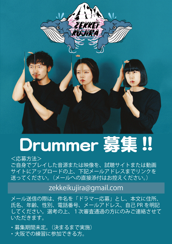 大阪のロック・バンド、絶景クジラがドラマーの募集を開始した。