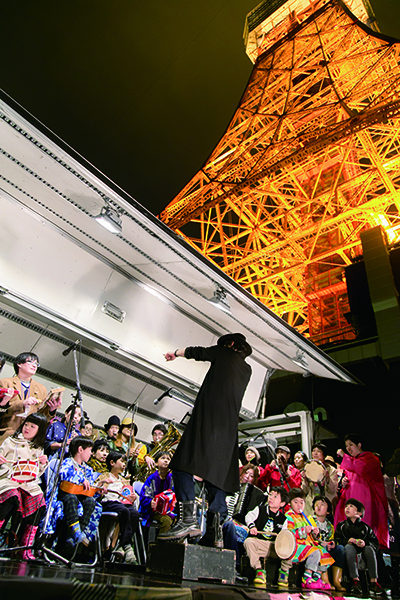 音楽家・大友良英のディレクションのもと、誰もが参加できる音楽フェスティヴァル。3年目の今年は10月15日(日)に東京タワーにて開催された。ワークショップ参加者がアーティストと共にステージで演奏を行うほか、一般参加者がプロジェクトFUKUSHIMA!と共に大風呂敷で会場を飾る。