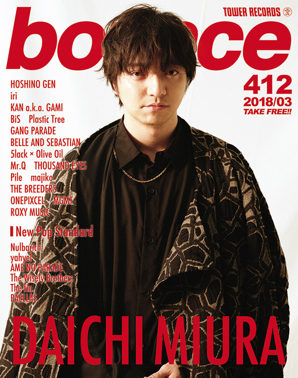 今号は、3月7日に自身初のベスト・アルバム『BEST』をリリースする三浦大知、2月28日に11枚目のシングル“ドラえもん”をリリースする星野源、そして2月28日にセカンド・アルバム『Juice』をリリースするiriが表紙と記事に登場。また、綴じ込みの中面表紙には3月7日にメジャー・デビュー・シングル『WHOLE LOTTA LOVE/DiPROMISE』をリリースするBiSが登場します。