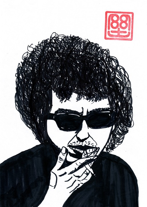 ご存じですか? 巷をジワジワと騒がせている画伯がいることを。その大胆かつ力強い筆致で、ミュージシャン、文化人、著名人などの肖像を描き続けている天才。その絵は、だれかの模倣なんてものではなく、オリジナリティーの固まり。そして描き手として、対象者(描く相手)を気持ち良くしてあげよう(綺麗に描いてあげようとかハンサムにしようとか)なんていう配慮はきっと皆無(笑)。故に対象の姿かたち、表情がリアルで、その人柄がそのまま浮かび上がってくるように感じがする。言い方はヘンかもしれません、絵と実物の距離が近くて、ちょっと息苦しいぐらい。