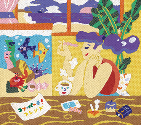収録曲は、おかもととひろせの両者が作詞作曲、そしてヴォーカルも担当していることからもわかるように多種多様で、バラードあり、笑える曲あり、現行シティ・ポップありの盛りだくさん仕様。しかし太陽がさんさんと照らすファンク調“常夏ヴァカンス”で始まり、夜に明日への希望を託すような“ベッドサイドミュージック”で終わる一連の流れは、まるで長い一日、あるいは人生の縮図を表しているかのようだ。