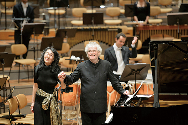 「演奏に〈絶対性〉はありません。それは楽譜に書かれた真実だけです。演奏家は作曲家の手稿譜に当たり、解釈に再考を加えながらそれを究め、人々と分かち合う目的のために存在します。現れては消えていく中で〈まあ、いい演奏もあったわね〉という感じ。だから(ベルリン・フィル・レコーディングスからディスク化の申し出があったときも)最初は〈古いのを出すなんて、いや〉だったけど、〈まあ、聴いてくれ〉と言われ、聴いてみたのです。本当のライヴのバイタリティーがある演奏だと思いました。2010年当時のサイモンと私。お互い、まだ若かった(笑)時点の記録には違いありません。もし今、改めて入れ直せば別のことをするでしょう。私自身は同じ曲を何度も録るの、好きではありません。それは演奏家の驕慢(きょうまん=おごり)です。よく3度も取り直し、最初のが一番よかったなんてケースがあるでしょ? ベートーヴェンの協奏曲の録音も私、クルト・ザンダリンクさんとのものだけと考えています。今回は大好きなサイモンとの記念であり、レコーディングではなく演奏会なので〈まあ、出しても構わないでしょう〉と、ハラをくくりました」