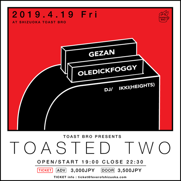 日程は4月19日(金)、場所は静岡のTOAST BROとのことだが、こちらの会場についての情報は一切明かされていない。TOAST BROの詳細は3月1日(金)にオフィシャル・ツイッターで解禁されるそうだ。いずれにせよ、東京・渋谷CLUB QUATTROでのワンマンを成功させたばかりのGEZAN、昨年には東京・日比谷公園野外大音楽堂での〈Gerato TOUR 2018 FINAL〉を大盛況で終えたOLEDICKFOGGYというライヴに定評のある2組だけに、熱すぎる一夜になることは間違いない。静岡近郊のリスナーのみならず、駆けつけたいところ。