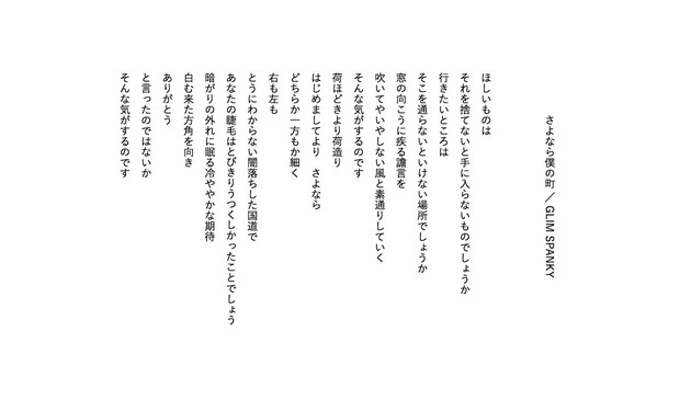 気鋭の若手詩人・黒川隆介の連載がスタート。毎回、洋邦/新旧問わず、黒川氏が気になるアーティストの楽曲を1曲ピックアップし、その歌詞を咀嚼してアンサーソングならぬ〈アンサーポエム〉を書き下ろします。記念すべき1回目に取り上げるのは、黒川氏とも交流のあるGLIM SPANKYの、2015年のアルバム『SUNRISE JOURNEY』から“さよなら僕の町”です。黒川氏が楽曲を浴びた結果生まれたアンサーポエム、ぜひ楽曲を聴きながらお楽しみください。 *Mikiki編集部