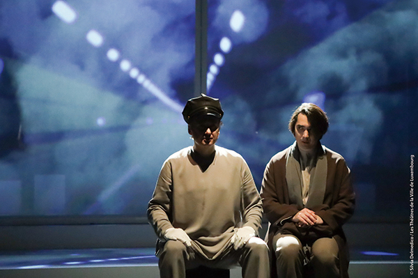台本も、淡々とした幻想性から選ばれた、川端康成の短編「無言」に基づいている。デスプラと共同で台本を手がけたヴァイオリニストのソルレイ(ドミニク・ルモニエ)は、公私にわたる長年のパートナーで、演出、ヴィデオ映像もソルレイが担当した。2人は、このオペラで、数年前、脳の手術の後遺症でソルレイの左手の指が以前のように動かなくなってしまったことと、「無言」に登場する作家が、脳卒中により言葉を失い、書けなくなったことを重ね、表現手段を失った芸術家はどう生きていくのかという問いを掲げる。もちろんこの舞台では、それに対する明確な答えはないままに、現実と虚構、想像の狭間で、言葉や想いが夢の中の出来事のように曖昧に漂っていたのが絶妙であった。