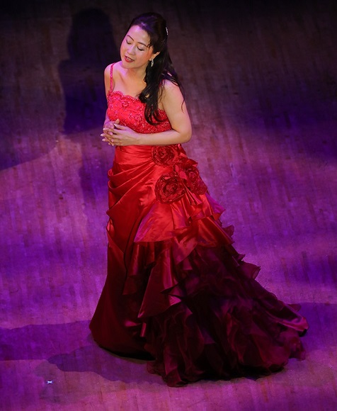 その雰囲気を前奏曲のように纏って今夜の主役である幸田が登場。「ジャンニ・スキッキ」の有名なアリア“私の愛しいお父さま”に乙女ラウレッタの深い恋心を滲ませ、異色作「つばめ」より“誰がドレッタの美しい夢を”では純粋な愛への憧れを歌う。