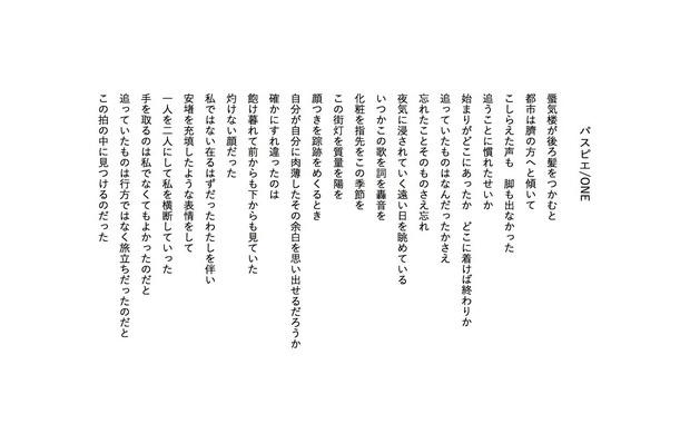 ――ポエムの詩と楽曲の詞で違うのは、歌詞ってもしかしたら何百回と歌わなきゃいけないもので、ポエムはポエトリー・リーディングでもしない限り何度も声に出したりはしないところかなと思うんですが、何百回と歌うなかで例えば飽きてきたり、逆に最初になかった愛着が湧いてきたりとかはありますか?