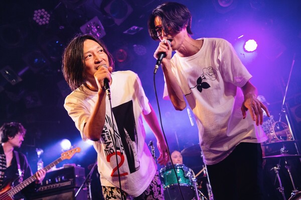 さらに新作からのややエモーショナルな2曲 “NAVYBLUE GIRL”“Eternal Sunshine”(後者はスモークが焚かれ、幻想的なムードに)を挟んで、ふたたび鈴鹿のMCが。「楽しいです! みなさんも楽しいですか!?」以降マシンガン・トークが始まり、突っ込み役のマイケルが「どんだけの人に伝わったのかな」と斬っていく。また、今回のツアーではそれぞれのバンドのホームを廻ったことを振り返り、京都が拠点である彼らが「こうして東京も交流していくことでホームになる」と話し、会場からは拍手が起きる。西田がボソッと「江戸はええな」とこぼしたところで、いよいよ終盤へ。