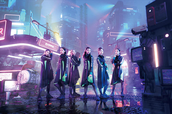しかしながら、なぜここまで振り切れたアルバムができたのか。そもそもBiSHらを擁するWACKとavexの共同プロジェクトとして始まったEMPiREがデビュー作『THE EMPiRE STRiKES START』(2018年)の時点で明確に試みていたのは、サウンド・プロデューサーの松隈ケンタ率いるSCRAMBLESらしいバンド・サウンドを下地にしながらも、サカナクションからSPEEDまでをリファレンスした幅広い意味でのダンス・ミュージックの導入であったように思えます。なかでもフックのパートをサビメロではなくドロップで牽引するハウシーな“FOR EXAMPLE ??”はグループのフューチャリスティックな雰囲気を推進する攻めの逸曲に仕上がっていました。その後もリリースを重ねるなかでロック×エレクトロを主体にサウンドの引き出しを豊かにしてきた彼女たちですが、NOW EMPiRE加入後の初シングルとなった7月の“SUCCESS STORY”以降はよりエレクトロニックな意匠とダンサブルな魅せ方にフォーカスした楽曲がグループの明確なカラーとして示されるようになり、続く10月の“RiGHT NOW”では〈限界突破〉のテーマさながらにヴォルテージを上げたアッパーな熱気を放出。個々に成長してきた歌唱の逞しい進化も相まって、スタイリッシュなだけではないEMPiRE楽曲の独自性はアルバムへ向けて着々と磨き上げられていたというわけです。