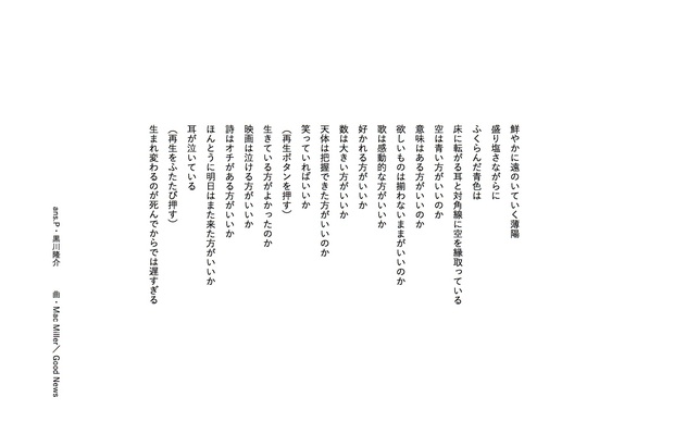 気鋭の若手詩人・黒川隆介が毎回、洋邦/新旧を問わず、気になるアーティストの楽曲を1曲ピックアップし、その歌詞を咀嚼してアンサーソングならぬ〈アンサーポエム〉を書き下ろすこの連載。11回目は先日MVが公開されたばかり、マック・ミラー(Mac Miller)の“Good News”です。黒川氏が楽曲を浴び続けた結果生まれたアンサーポエム、ぜひ楽曲を聴きながらお楽しみください。 *Mikiki編集部