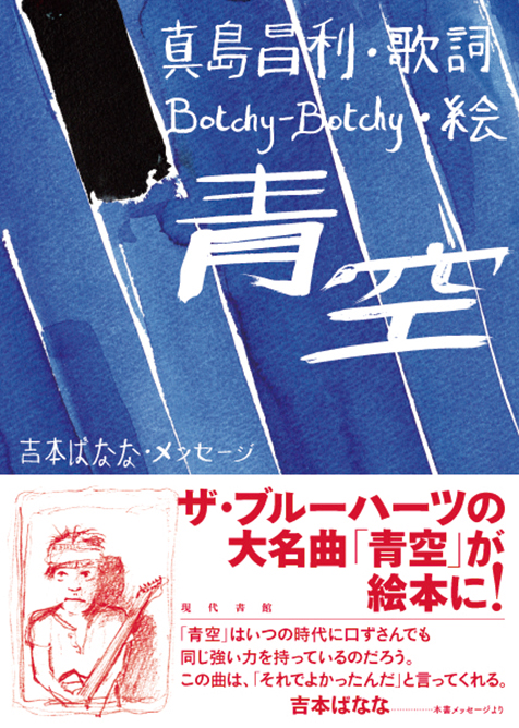 旅から戻ると、一冊の絵本が届いていた。タイトルは「青空」。ザ・ブルーハーツのマーシーこと真島昌利の歌詞に、フランス人イラストレーターBotchy-Botchyが絵をつけた。藍色の表紙には手描きの日本語タイトル。頁をめくると、藍から墨色に変わり……思わず〈詞〉をつぶやく。
