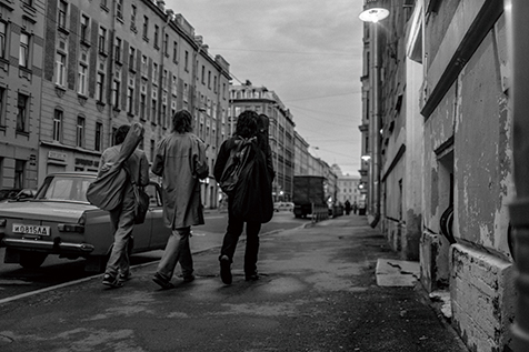 本作でまず興味深いのが、これまであまり知られることがなかったロシアのロック・シーンの状況だ。輸入が規制されているロックのレコードは貴重品。マイクはオープンリールのテープに録音した音源を聴き、曲を聴きながら歌詞を書き起こしたり、ジャケットを模写したりとロックに対する情熱や研究心はハンパじゃない。一方、ヴィクトルはフリーマーケットで自分が描いたロックスター、マーク・ボランやビートルズのポートレートを売り、ロック好きの若者が買っていく。そんな厳しい環境のなかで、マイクとヴィクトルは自分の音楽を見出すために悪戦苦闘する。