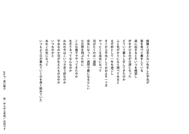 気鋭の若手詩人・黒川隆介が毎回、洋邦/新旧を問わず、気になるアーティストの楽曲を1曲ピックアップし、その歌詞を咀嚼してアンサーソングならぬ〈アンサーポエム〉を書き下ろすこの連載。25回目は、ゆらゆら帝国の“空洞です”です。黒川氏が楽曲を浴び続けた結果生まれたアンサーポエム、ぜひ楽曲を聴きながらお楽しみください。 *Mikiki編集部