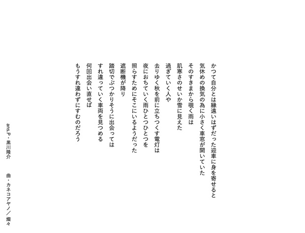 気鋭の若手詩人・黒川隆介が毎回、洋邦/新旧を問わず、気になるアーティストの楽曲を1曲ピックアップし、その歌詞を咀嚼してアンサーソングならぬ〈アンサーポエム〉を書き下ろすこの連載。28回目は カネコアヤノの“燦々”です。黒川氏が楽曲を浴び続けた結果生まれたアンサーポエム、ぜひ楽曲を聴きながらお楽しみください。 *Mikiki編集部
