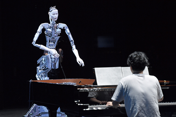 アンドロイドは人造人間を意味する用語としてSFやアニメで古くから知られているが、現在はおそらく、人工知能(AI)と並行する話題ととらえる方が少なくないであろう。渋谷がアンドロイドのオペラを最初に構想した2013年はおりしも、ジェフリー・ヒントンが提唱したディープラーニングの黎明期にあたり、自己学習により生成変化する自律的な人工知能(AI)なる用語が巷間を賑わしていた。仮にアンドロイドがそのような知性をもつなら、旧来のメカニカルなあり方よりはもっとずっと人間にちかくなる。その一方で、この10年の人工知能~人工生命の分野における科学的な知見は人間と人工的な知能や生命とのあいだのけっしてのりこられない落差もしめしてきた。認識や哲学や倫理、そしてなにより芸術をつくり、作品にふれるさいのこころの動き――、渋谷慶一郎の構想には音楽的にであれ科学的にであれ、閉じた系のなかだけでは解決できないそのような複層的な課題をふくんでいる。