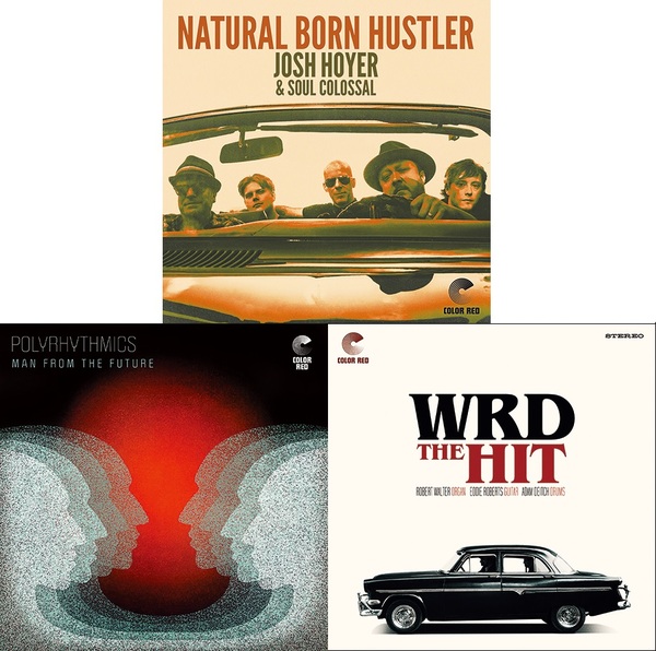 左から、ジョシュ・ホイヤー&ソウル・コロッサルのニュー・アルバム『Natural Born Hustler』(Color Red/Pヴァイン)、このたび2枚組仕様で日本盤化されたポリリズミックスの2020年作『Man From The Future』(Color Red/COLOR RED JAPAN)、4月28日にリリースされるWRDトリオのファースト・アルバム『The Hit』(Color Red/Pヴァイン)