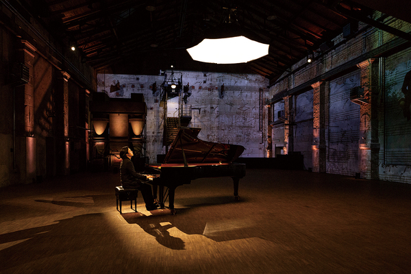 収録会場は1900年に路面電車の送電所として完成したレンガ造りの建物を建築家ウルリヒ・マルディンガーと医療統計学者マルクス・レフラーが取得、2014年にデジタルアートとコンサート&展覧会の文化センターへと再生したクンストクラフトヴェルク(Kunstkraftwerk=芸術発電所)ライプツィヒ(https://www.kunstkraftwerk-leipzig.com/de/)。キムの正面にはベートーヴェンの肖像画、壁全体にも楽譜が投影され、時代の新旧を超越した〈芸術の時間〉の対話を視覚面から盛り上げる。