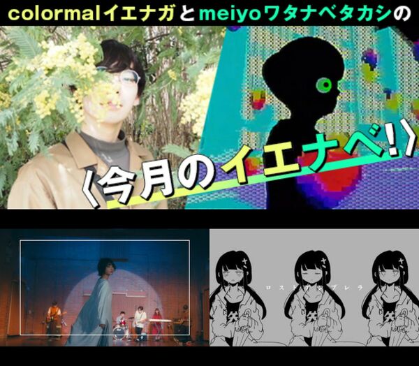 2021年よりバンド体制になったcolormal(カラーマル)のヴォーカル/ギター担当イエナガと、自身のソロ・ユニットmeiyoの他に、侍文化、SAM4416、POLLYANNA、HGYM、プールと銃口といったバンド・ユニットにも在籍し、数々のアーティストのサポートや楽曲提供も行うワタナベタカシの二人による連載〈今月のイエナベ!〉。東西を代表するインディー・アーティストの雄でもあり、友人同士でもある二人が、その月(今回は2021年6月)に聴いて良かった音楽を3曲ずつ、〈イエでナベでも食べながら報告しあう〉ように紹介する連載です(たまに編集の酒井が茶々を入れます)。それではお二人、張り切ってどうぞ~!