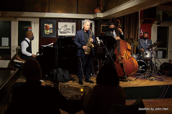 コロナ・パンデミックで、NYのライブ・ジャズ・シーンは昨年3月から、完全に停止した。現在は、ワクチン接種が進み、この6月下旬から各ジャズ・クラブは再始動し、また夏のフェスティヴァル・シーズンも、戻りつつある。昨年11月末、アルト・サックス・プレイヤーのジム・スナイデロは、まだ厳しい状況下、感染率の低い、NYCから車で1時間ほどのペンシルヴェニア州で、およそ8か月ぶりの観客を前にしたギグを敢行し、その熱気をライブ・アルバムとしてドキュメントしたのが、本作だ。