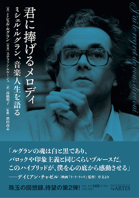 ちょうど6年前に出た邦訳書「ミシェル・ルグラン自伝 ビトゥイーン・イエスタデイ・アンド・トゥモロウ」に続くルグランの自伝第2弾である。いや、自伝というよりも回顧録という表現がふさわしいか。前作同様、編年体で軌跡を列記するのではなく、最晩年の視点から、前後の脈絡なくテーマ(人物や作品など)ごとに想い出を語っているから。〈さて、今夜は何について話そうかな?〉といった感じで。その口調は彼の音楽の如く軽快だが、記憶は驚くほど詳細であり、ページを繰るごとにスリリングなエピソードが飛び出してくる。2冊続けて読み終わる頃には、〈ミシェル・ルグラン〉というタイトルのミュージカルを観たような錯覚におちいっていたのだった。