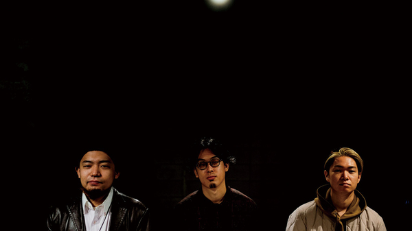 写真右側より、松丸契(アルト・サックス/エレクトロニクス)、高橋佑成(ピアノ/キーボード/エレクトロニクス)、落合康介(アコースティック・ベース/モリン・ホール/パーカッション/エレクトロニクス)によるエレクトロアコースティックアンビエント/アバントトリオ。読み方はエムドフェ。