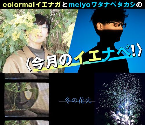 2021年よりバンド体制になったcolormal(カラーマル)のボーカル/ギター担当イエナガと、TikTokでブレイクし先日メジャーデビューを果たしたmeiyoの中の人・ワタナベタカシの二人による連載〈今月のイエナベ!〉。友人同士でもある二人が、前月に聴いて良かった音楽を3曲ずつ、〈イエでナベでも食べながら報告しあう〉ように紹介する連載です(たまに編集の酒井が茶々を入れます)。それではお二人、張り切ってどうぞ~!