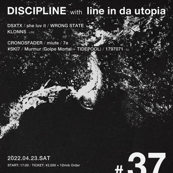 ハードコアパンクバンド、KLONNSを中心に東京・小岩のBUSHBASHにて隔月で開催されている名物パーティー〈Discipline〉。今回は、大阪のハードコアパンクバンド(プレスリリースには〈大阪極悪BEATDOWN HARDCORE〉とある)、she luv itのメンバーであり、大阪・東心斎橋の〈秘所〉として知られるバー〈atmosphäre〉のオーナーでもあるFLUXが主催するパーティー〈line in da utopia.〉との共同で開催される。