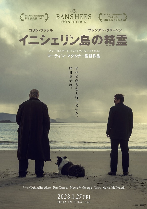第74回ヴェネチア国際映画祭で脚本賞、続く2017年度トロント国際映画祭で最高賞の観客賞を受賞、さらに主演のフランシス・マクドーマンドに2度目のアカデミー賞主演女優賞をもたらし、その年、映画ファンを最も興奮、震撼させた傑作「スリー・ビルボード」から5年。いまなお演劇界・映画界の最前線に立つ鬼才マーティン・マクドナーの、全世界待望の新作「イニシェリン島の精霊」が公開されます。