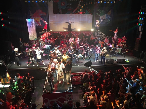 そして、客席のオーディエンスをも渋さ知らズオーケストラの一員として取り込んでしまうような会場の一体感も、彼らのライブの醍醐味である。同じ空間を共有しながら、あらゆる人を巻き込み膨れ上がる熱気は、まるで演奏やパフォーマンスが肥大化していくような、そんな生々しい迫力として肌で感じることができる。