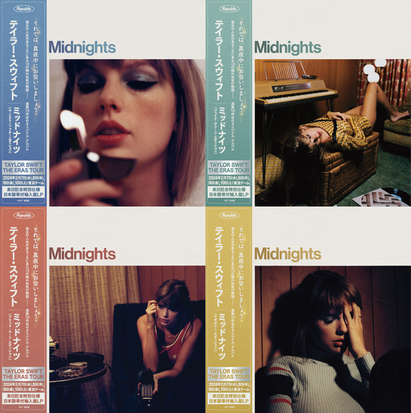 販売されるのは、最新作『Midnights』(2022年)の『Midnights: Moonstone Blue Edition Vinyl』『Midnights: Jade Green Edition Vinyl』『Midnights: Blood Moon Edition Vinyl』『Midnights: Mahogany Edition Vinyl』という4枚。日本語帯はキャップ式で、各帯の上部に今回の日本公演の日付などを特記した、今回限りの特別仕様になっている。いずれも数に限りがあるので、なくなり次第販売終了になる。また、場合によって1人あたりの購入数に制限を設けることがあるとのことなので、注意してほしい。