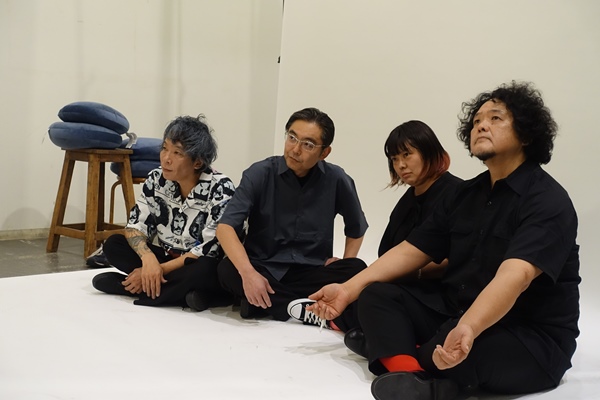 続いてバンド名にちなんで座禅を組んで撮影することに。