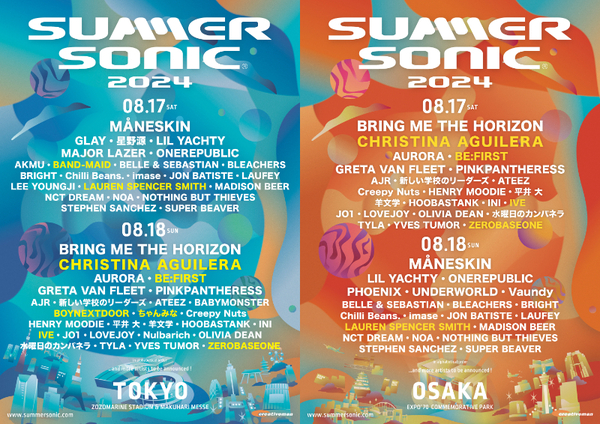 2024年8⽉17⽇(⼟)、18日(⽇)に東京・大阪で開催される〈SUMMER SONIC 2024〉の第4弾ラインナップが発表された。