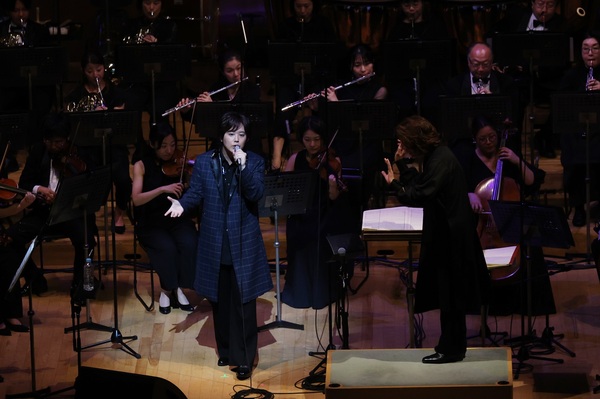 登壇したマエストロの凛々しさにコルコバードの基督像が重なった。その十指が舞い、ポーターの“So in love”が郷愁のミストを撒くと、館外の猛暑の記憶が拭われた。〈西本智実「ノスタルジー」with 三浦祐太朗 -山口百恵名曲集-〉の帆が上がり、拍手に迎えられたヴォーカリストが“夢先案内人”を歌い出す。催しの中心を占める黄金トリオ(作詞:阿木燿子/作曲:宇崎竜童/編曲:萩田光雄)による人気作を、海沼みきながオーケストレーション。編曲も構成も鋭意進行中だった2カ月前、取材に応じた西本は当時の課題を「各曲の調性バランス、一部・二部後半はひとつのドラマになるよう構成したい」と繰り返し強調していた。が、その解答の全てが凝縮されたような滑り出しだった。