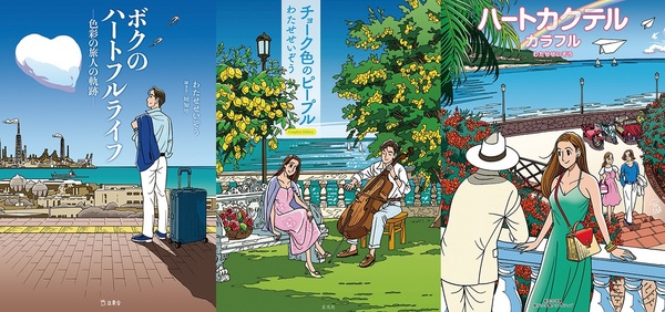 あわせて2作の作品「チョーク色のピープル」(玄光社)、「ハートカクテル カラフル」(小学館クリエイティブ)も紹介。前者は1986年に角川書店の文芸誌「野生時代」に連載された作品で、白亜の煉瓦造りのアパートメントを舞台に描かれた「汐風になく建物」から「チョーク色の恋」までの新作1編を含む12編の恋物語の復刊。後者はNHKアニメのために描き下ろされた「ハートカクテル」シリーズ最新作だ。紙媒体では未発表だった作品を、映像化の際にカットされた場面やセリフを含む完全版として書籍化。タイトルの〈カラフル〉は単に色彩をあらわしているというだけではなく、多様性という意味を含んだものになっている。わたせせいぞうらしい恋愛ストーリーを多様性、福祉の観点から描いてほしい、という依頼に作者が応えたもので、美しい四季の風景とともに過ぎてゆく計15編のストーリーが描かれている。なおNHKアニメでの声優は亀梨和也、満島ひかり、そして初代「ハートカクテル」でお馴染みの奥田民義が担当した。