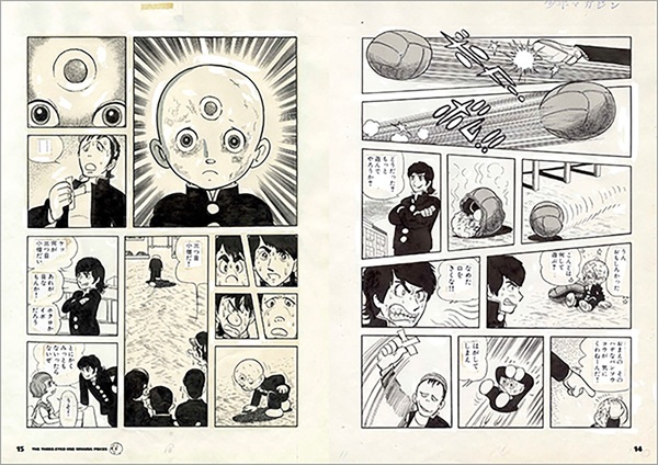 そんな時代の1974年から1978年にかけ「週刊少年マガジン」に連載された「三つ目がとおる」の〈雑誌掲載時の初出版と単行本版を見比べることができる特別な本〉が刊行された。主人公・写楽保介はかつて古代ムー大陸で高度な超古代文明を繁栄させた 〈三つ目族〉の末裔。額に貼られたバッテン型の白い絆創膏を剝がすとその下に封じられた第三の目があり、超能力と天才的頭脳を保介にもたらすという設定。保介には現代文明を滅ぼし〈三つ目王国〉を再興するという野望があるのだが、親友で想いを寄せるちょっと気の強い美少女・和登サンこと和登千代子に野望を阻止されるという物語だ。オカルト・ブームを背景に手塚治虫が挑戦したロマンティックでミステリアスな超古代文明をテーマにした作品だ。