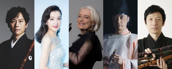 出演者は、世界を代表するリコーダーの名手ミカラ・ペトリをはじめ、フルートの山形由美、篳篥、笙の東儀秀樹、能管、田楽笛、篠笛の一噌幸弘(2月8日東京公演)、尺八の藤原道山(2月9日芦屋公演)と、名を見てわかる通り各楽器のトップ奏者ばかり。お馴染みの西洋楽器だけでなく、和楽器が含まれている点がクラシック・ファンには清新だし、この顔ぶれのソロやコラボを次々に堪能できるのは、まさに贅沢というほかない。