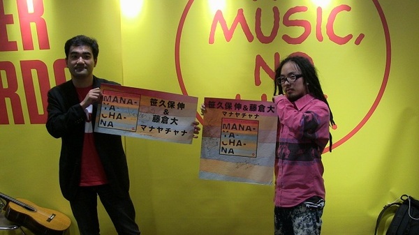 このアルバムを語る際の大きなトピックとなるのが、当事者である2人が一度も顔を合わせずに作品を作り上げてしまったという現代的な制作背景。そんな彼らが実際に出会い、『マナヤチャナ』を語りながら収録曲を演奏するという貴重なイヴェントがタワーレコード渋谷店の7Fにて行われた。当日は『マナヤチャナ』のリリースに関わったソニーの杉田元一が進行および演奏のアシストを務め、会場には笹久保とのアルバム『アヤクーチョの雨』で強烈なヴォーカルを聴かせていたイルマ・オスノの姿もあった。そんな約1時間に及んだ刺激的なイヴェントの模様を徹底レポート!