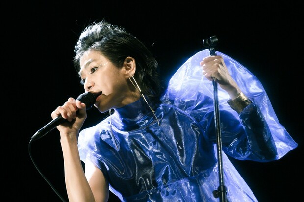延々と続くアフターアワーズみたいな残暑が続く10月下旬、一瞬だけ冬めいた気温を感じさせた不思議な夜に、真っ赤な衣装に身を包んだアイナ・ジ・エンドとUAが六本木のEX THEATERに降臨した。旅先で数日前に拝んだスーパームーンのように神秘的な魔力と、一瞬であらゆる生物を温める太陽に似た圧倒的な存在感を持つ二人の歌姫は、確かにいま同じ方角に向かって歩んでいるのかもしれない。二人の出会いは2022年に上演されたジャニス・ジョプリンのミュージカルでの共演がキッカケとのこと。ジャニスという偉大な先人が引き合わせたのか、自然と親睦を深め合い、更にはバンドメンバーが二名同じという流れも相まって、和やかで愛に溢れた対バンに仕上がっていたように感じる。アンコールはUAのデビュー曲で、アイナ・ジ・エンドが幼少期から口ずさんでいたという藤原ヒロシ氏プロデュースの「HORIZON」をセッション。まるでレコーディング済みの音源を聴いているかのような、極上完成度の音像に思わず心も体もウットリと。