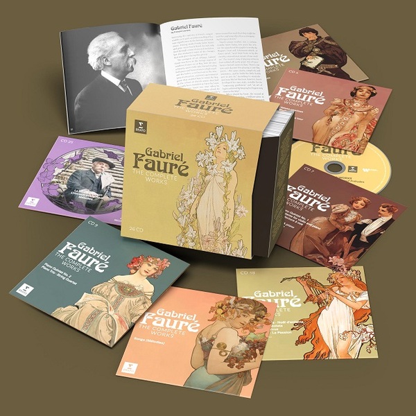 ことし(2024年)は1924年に79歳で亡くなったガブリエル・フォーレの没後100年。フランス音楽を多く録音してきたEratoがこの機に26枚組の〈全集〉をリリース。これまでもピアノのジャン=フィリップ・コラールと指揮のミシェル・プラッソンを軸に編成した作品集がでていた。エリー・アメリンクとジェラール・スゼーによる全歌曲もあった。今回は歌曲、宗教曲、舞台作品とともに、歴史的録音が加えられたが、旧作品集をそのまま合体させてはいない。重なってもいるが、慎重に避けながら、の感がある。だから演奏はヴァラエティに富む。難をいえば21世紀の録音は多くない。逆に、フォーレの音楽がもっているふくよかさ、かおり、澄んでいるのにちょっとくぐもりは、1950年代から60-80年代くらいの演奏のほうがいい、との判断もある。古き良き、とか、回顧趣味、とかではない。ある時代にはあったけれど、すこし時間が経つとなくなってしまうもの、そうしたなかにこっそりとこめられた質感の変化や新しさが、こうした演奏には生きている。そうした意味で録音は大事ではないだろうか。