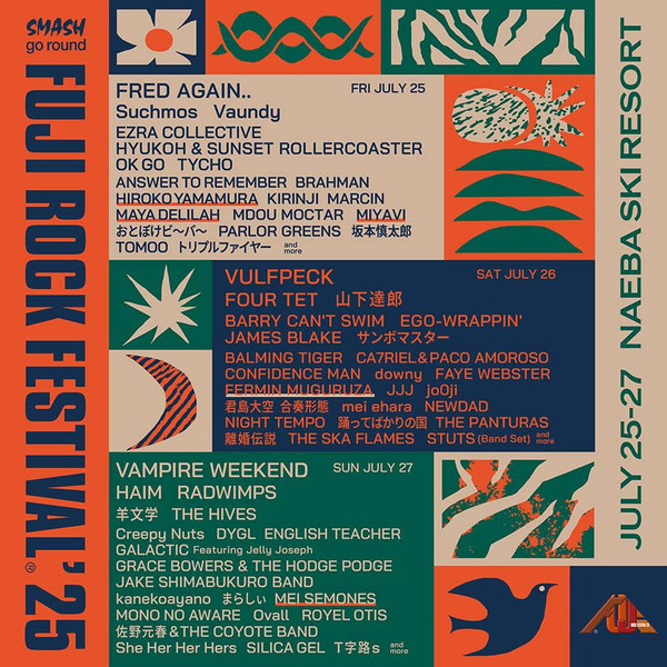 2025年の元日に開催が、1月31日に概要が発表された〈FUJI ROCK FESTIVAL ’25〉。2月21日には第1弾のラインナップとしてフレッド・アゲイン、ヴルフペック、ヴァンパイア・ウィークエンド、山下達郎など60組もの出演者を一挙に発表して話題をかっさらった。