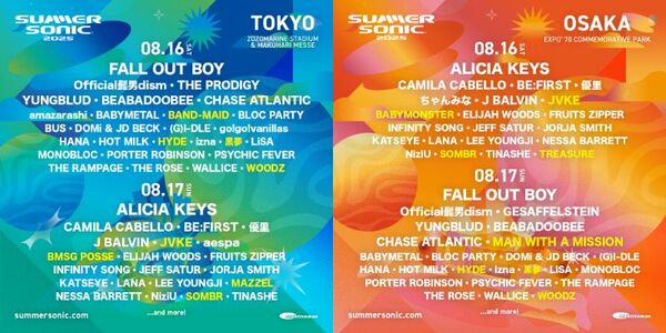 今年のサマソニはフォール・アウト・ボーイとアリシア・キーズをヘッドライナーに迎え、Official髭男dism、BABYMETAL、カミラ・カベロ、NiziUらが出演する。