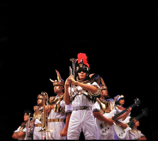 セッションミュージシャンとして超一流の実力を誇りながら、同時にエンターテイメント性を追求。中世の騎士をイメージさせる甲冑や鎧兜を纏い、ハイスキルの演奏を繰り広げながら激しいステージアクションを披露したのである。トランペットやベースをクルクル回転させる雄姿は、ライブパフォーマンスのひとつの見どころだったはず。